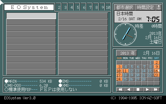 "EO SYSTEM" is a utilty program made by ICM Corp,which was one of peripheral equipment makers.